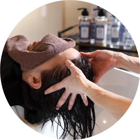頭皮と髪に優しいシャンプーでプロが手洗いで洗っていきます。