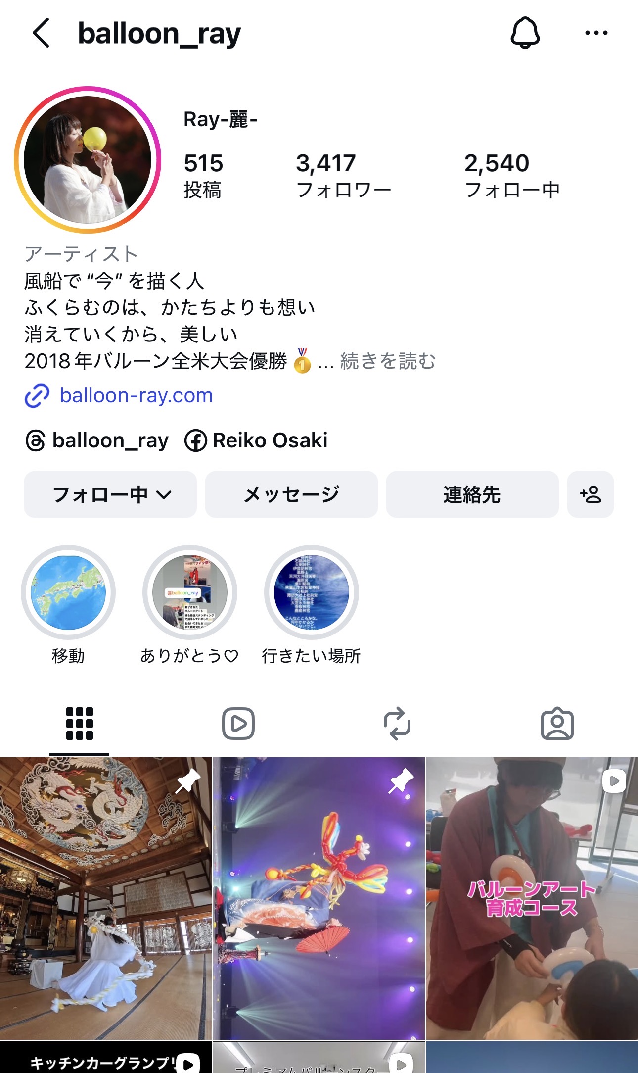 元美容師。世界的バルーンパフォーマーRayさん