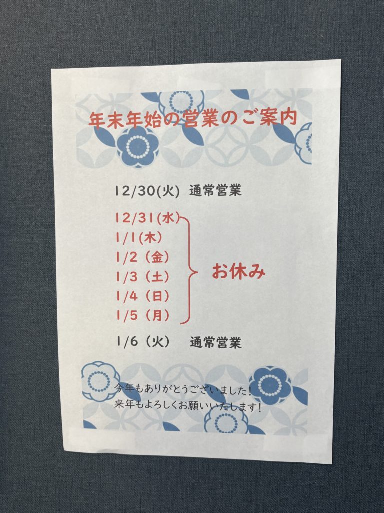 年末年始のお休み